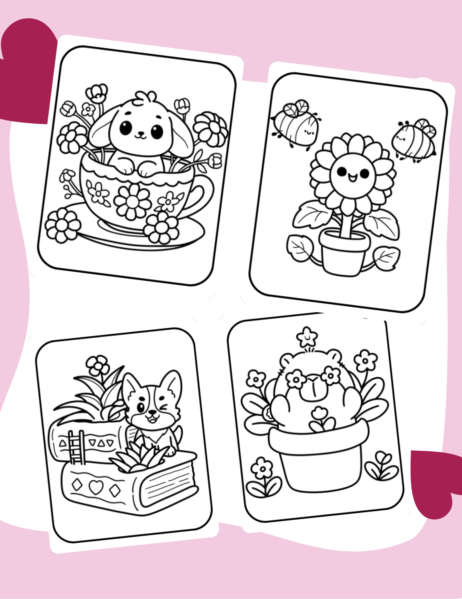 Cute Animals in Plants Colouring Pages (Digital Download)